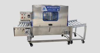 將消毒液體進行離分子霧化后輸入到霧化室,箱體經(jīng)過霧化室時周身被霧化后的消毒液覆蓋從而達到消毒殺菌的效果,該設(shè)備配合消毒液對物品外包裝進行消毒滅菌。